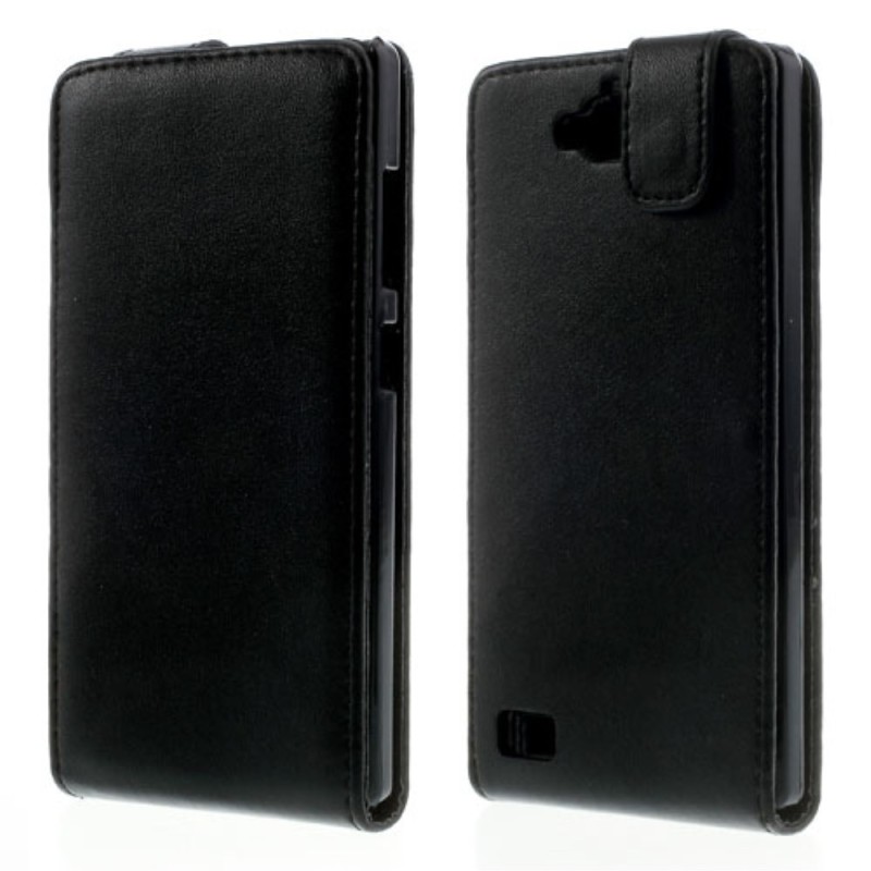 Huawei Honor 3C klasisks ādas vertikāli atvēramais melns maciņš / Vacins.lv