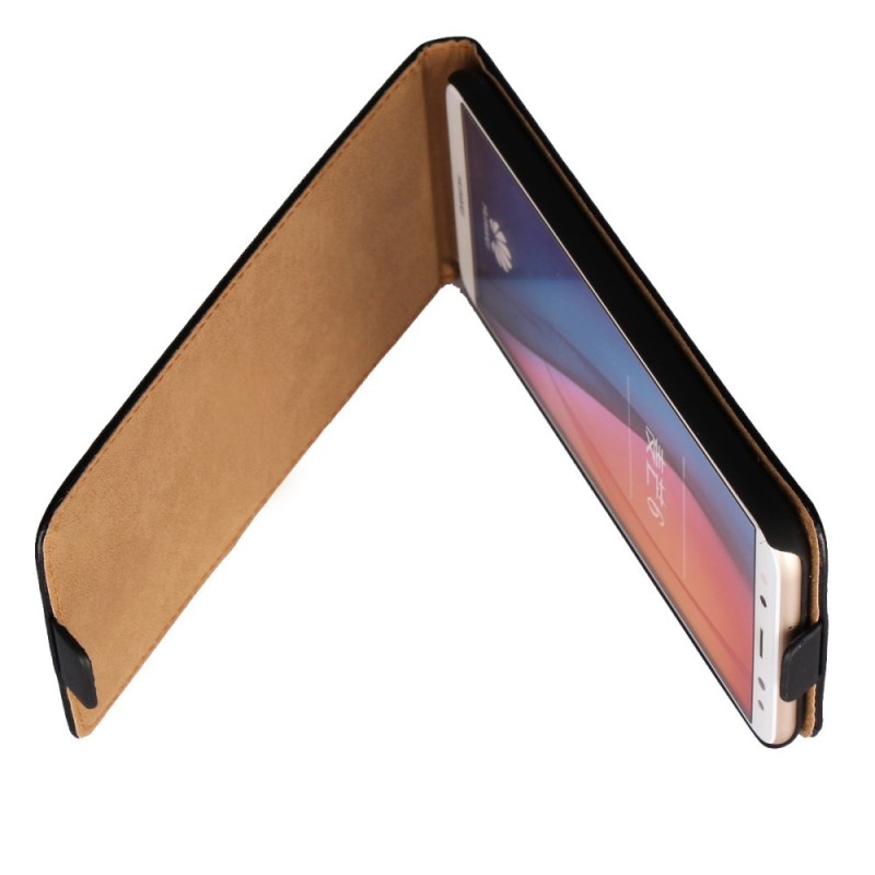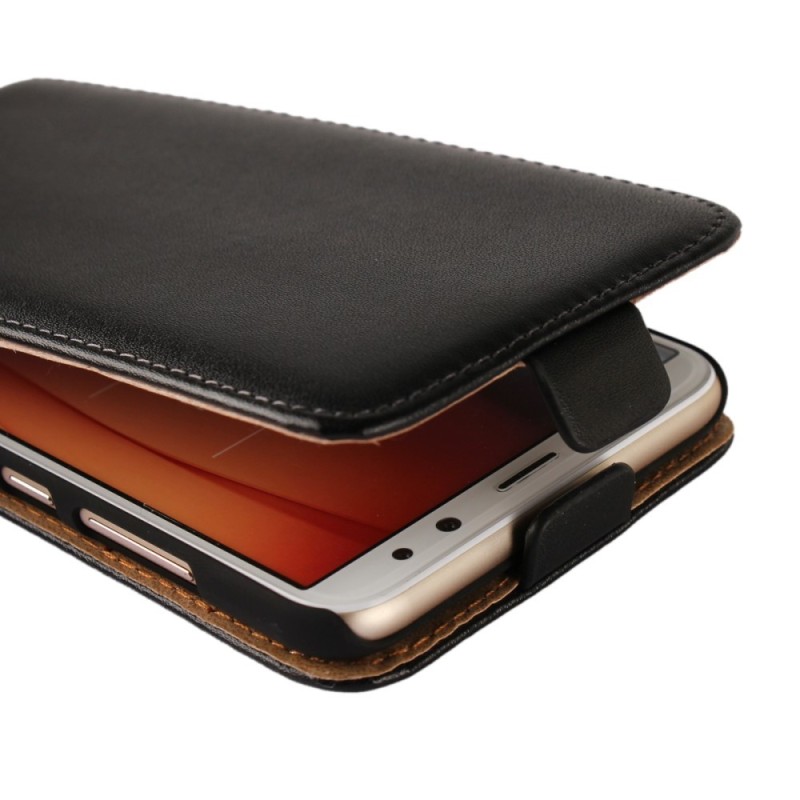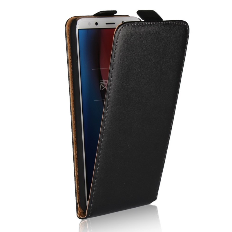 Huawei Mate 10 Lite klasisks ādas vertikāli atvēramais melns maciņš / Vacins.lv