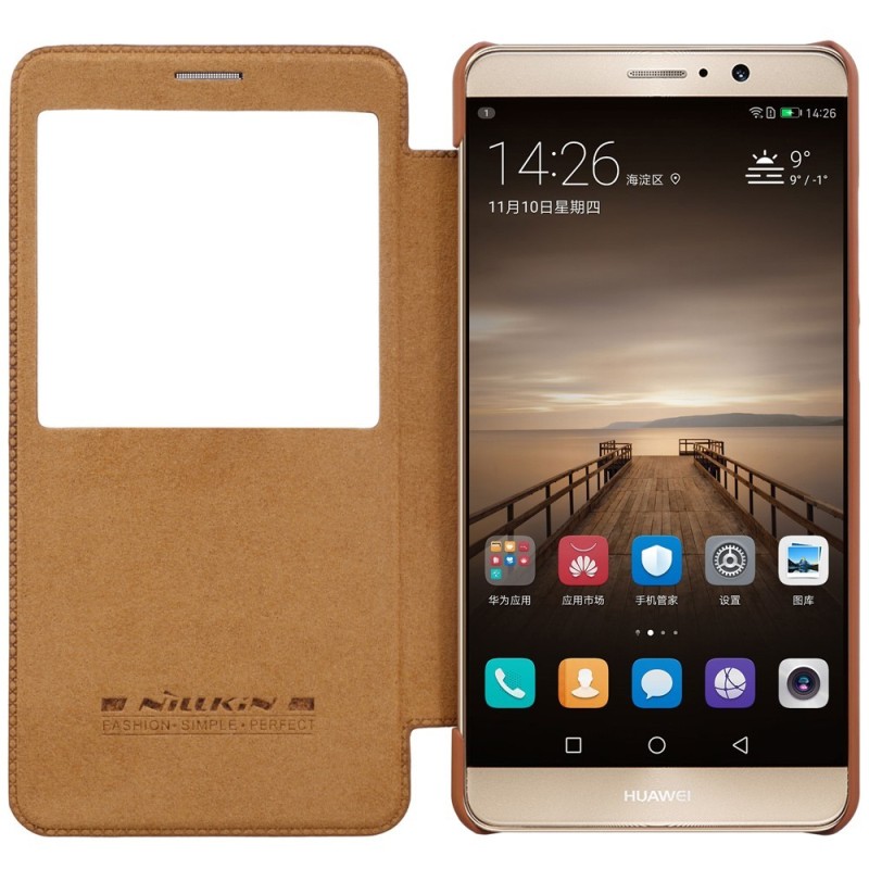 Greznais „Nillkin“ Qin sērijas ādas atvērams brūns Huawei Mate 9 maciņš / Vacins.lv
