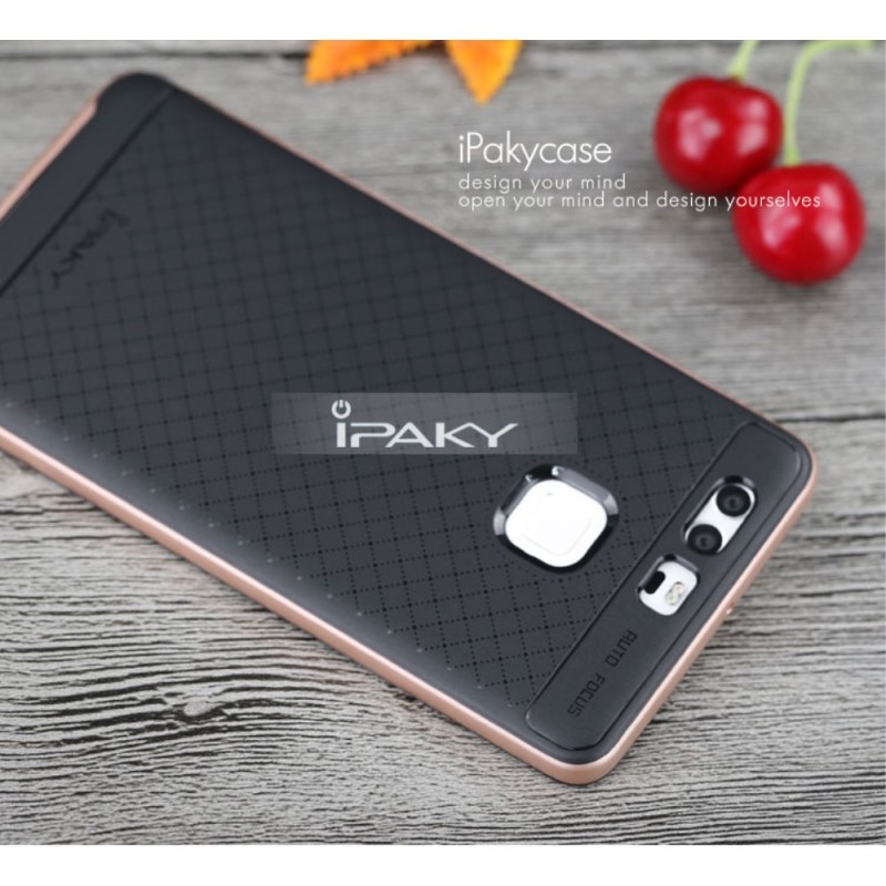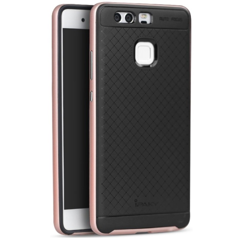 Huawei P9 „IPAKY“ cieta silikona (TPU) melns apvalks (apmales - rozā krāsā) / Vacins.lv