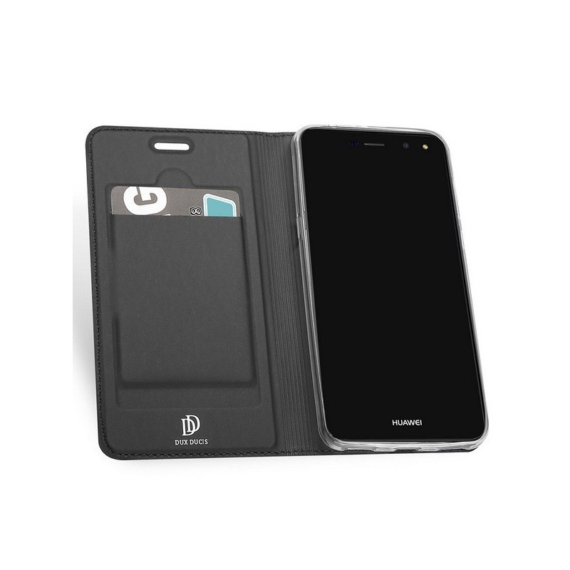 Huawei Y6 2017 / Y5 2017 (Nova Young) „Dux Ducis“ Skin sērijas melns ādas atvērams maciņš / Vacins.lv