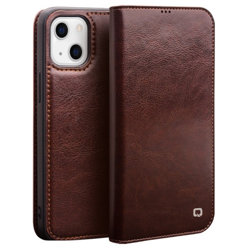 „QIALINO“ atvēramais ādas maciņš - brūns (iPhone 13)