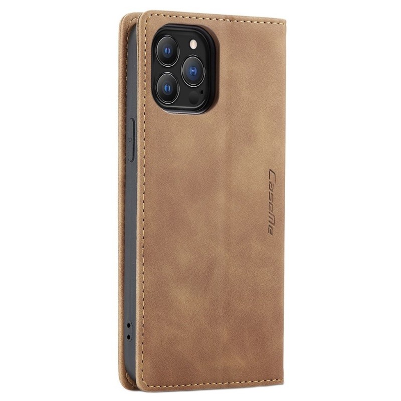 „CaseMe“ Retro solīds atvēramais ādas maciņš - gaiši brūns (iPhone 13 Pro)
