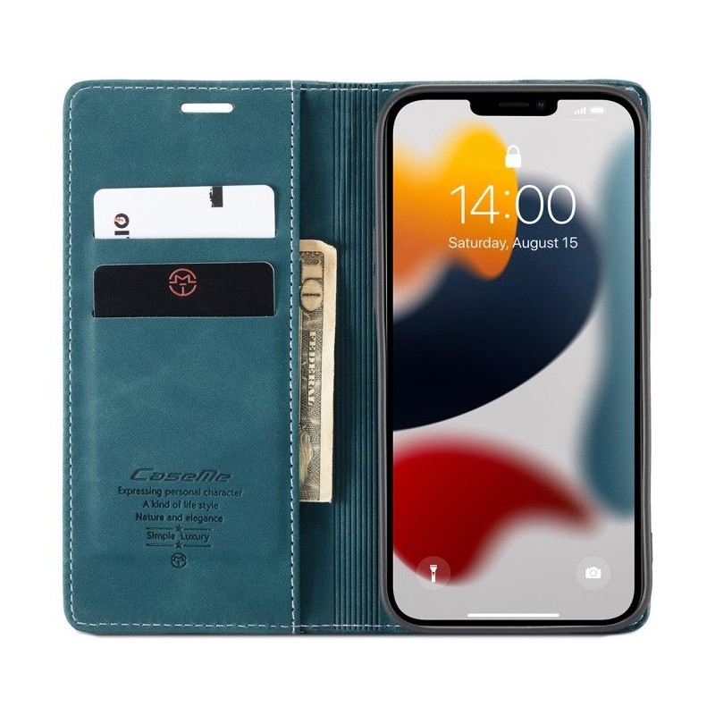 „CaseMe“ Retro solīds atvēramais ādas maciņš - zaļš (iPhone 13 Pro Max)