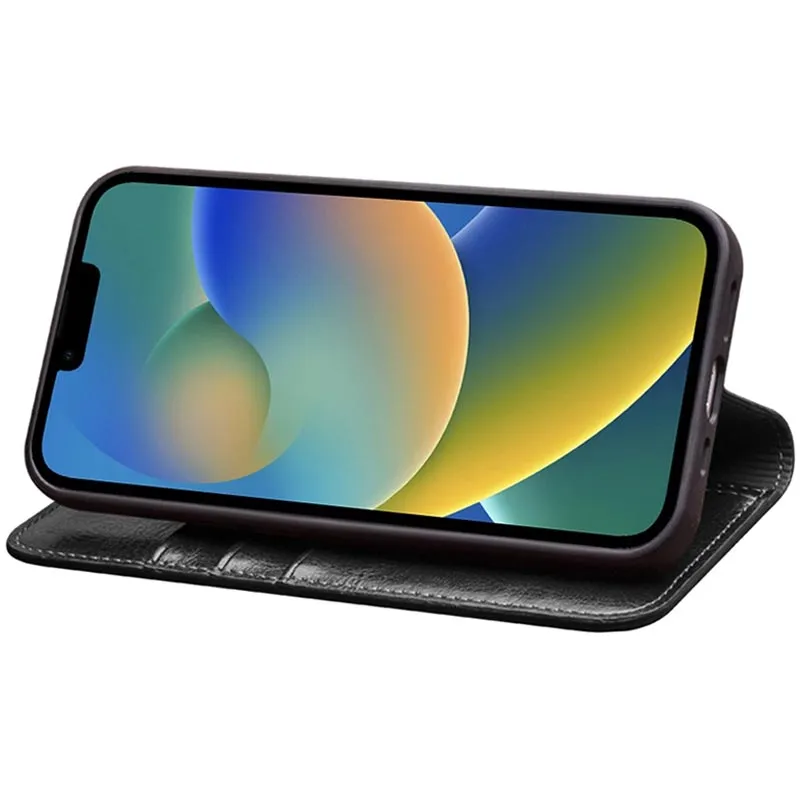 „QIALINO“ atvēramais ādas maciņš - melns (iPhone 14)