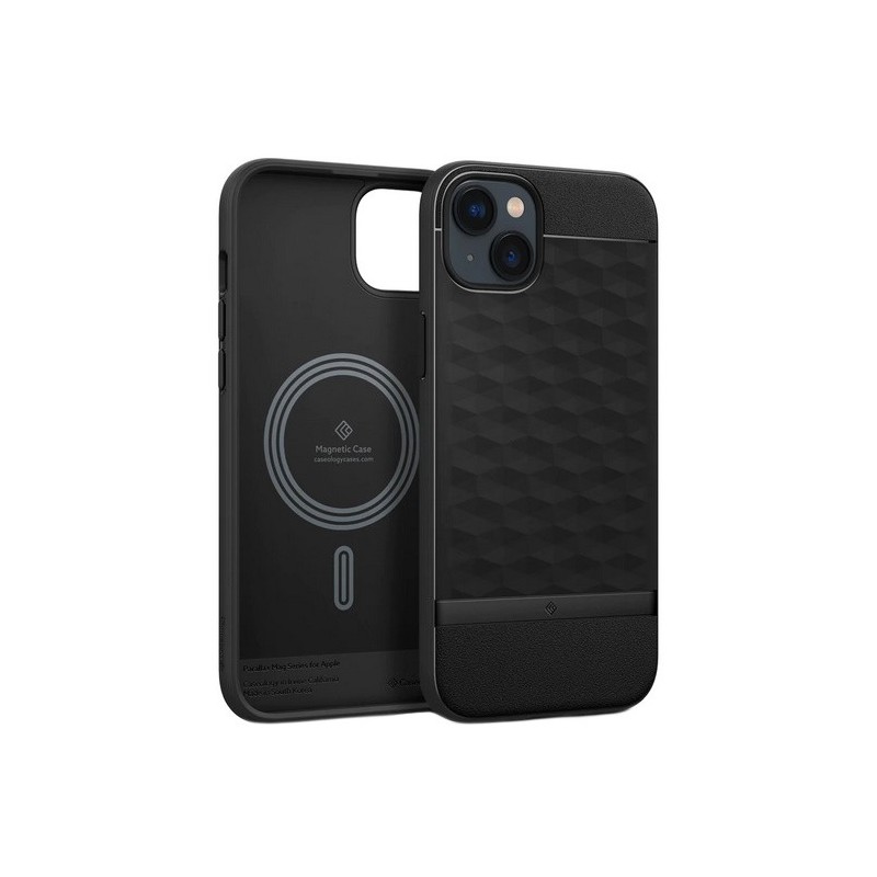 „Caseology“ Parallax Mag sērijas futrālis. Īpašs ne tikai ar savu unikālo dizainu, bet, pateicoties iekšēji integrētajam magnētam, tas ļaus ērti izmantot bezvadu uzlādes funkciju ar MagSafe vai citu Qi lādētāju.