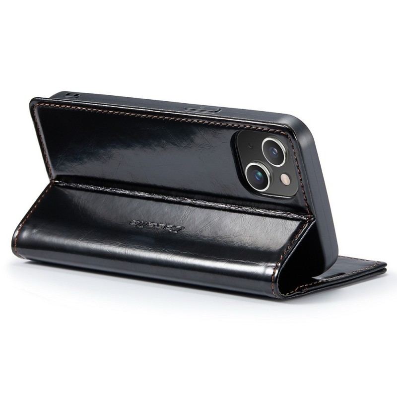 „CaseMe“ Leather solīds atvēramais ādas maciņš - melns (iPhone 15)