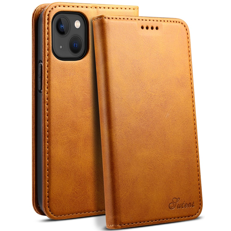 "Suteni" atvērams maciņš - gaiši brūns (iPhone 15)