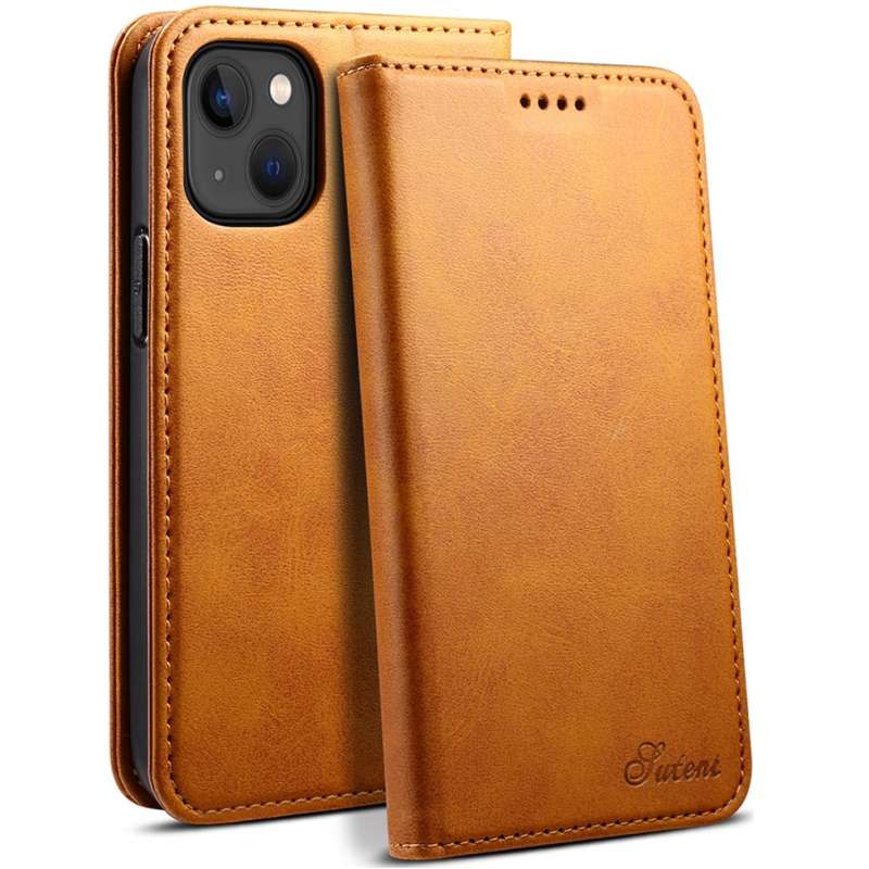 "Suteni" atvērams maciņš - gaiši brūns (iPhone 15 Plus)