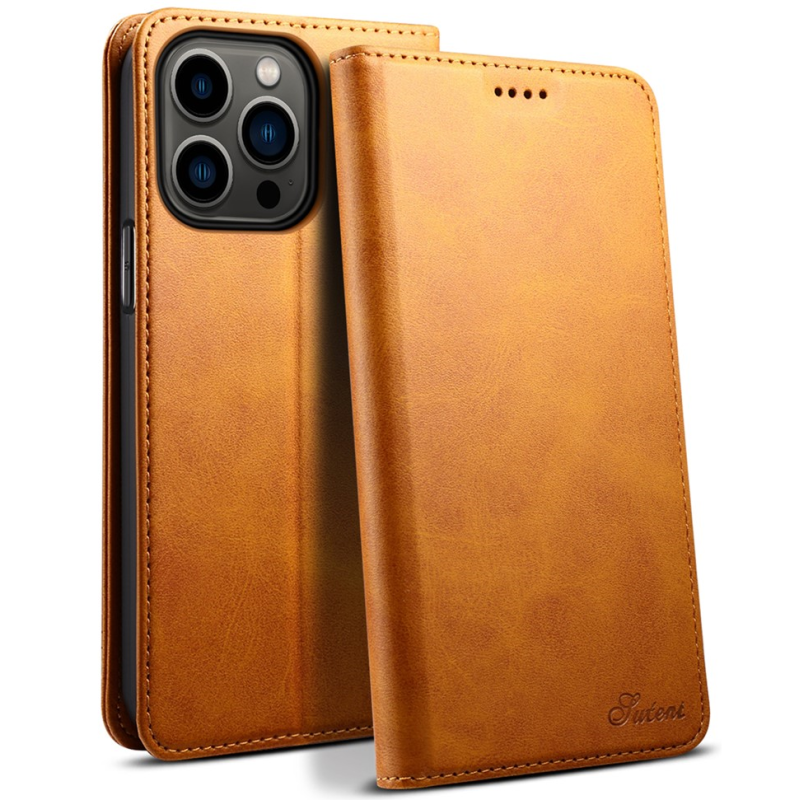 "Suteni" atvērams maciņš - gaiši brūns (iPhone 15 Pro)