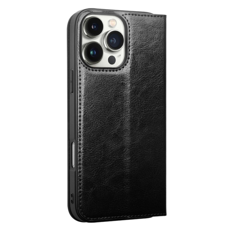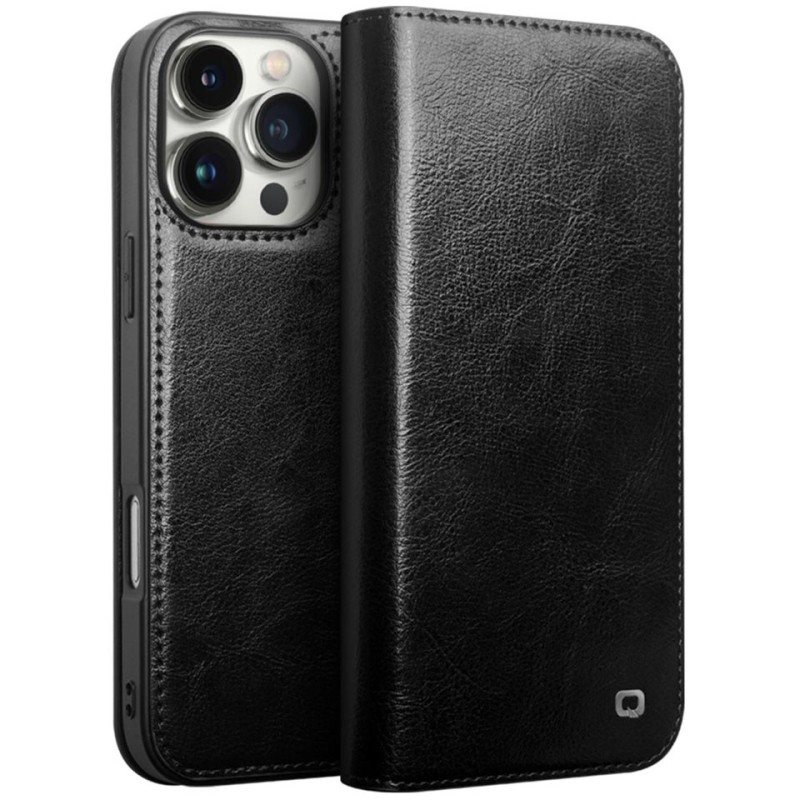"QIALINO" atvēramais ādas maciņš - melns (iPhone 16 Pro Max)