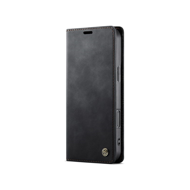"CaseMe" Retro Skin atvēramais ādas maciņš - melns (iPhone 16 Pro Max)