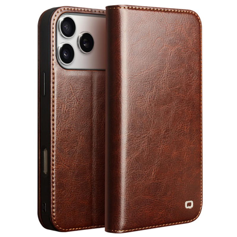"QIALINO" atvēramais ādas maciņš - brūns (iPhone 17 Pro Max)
