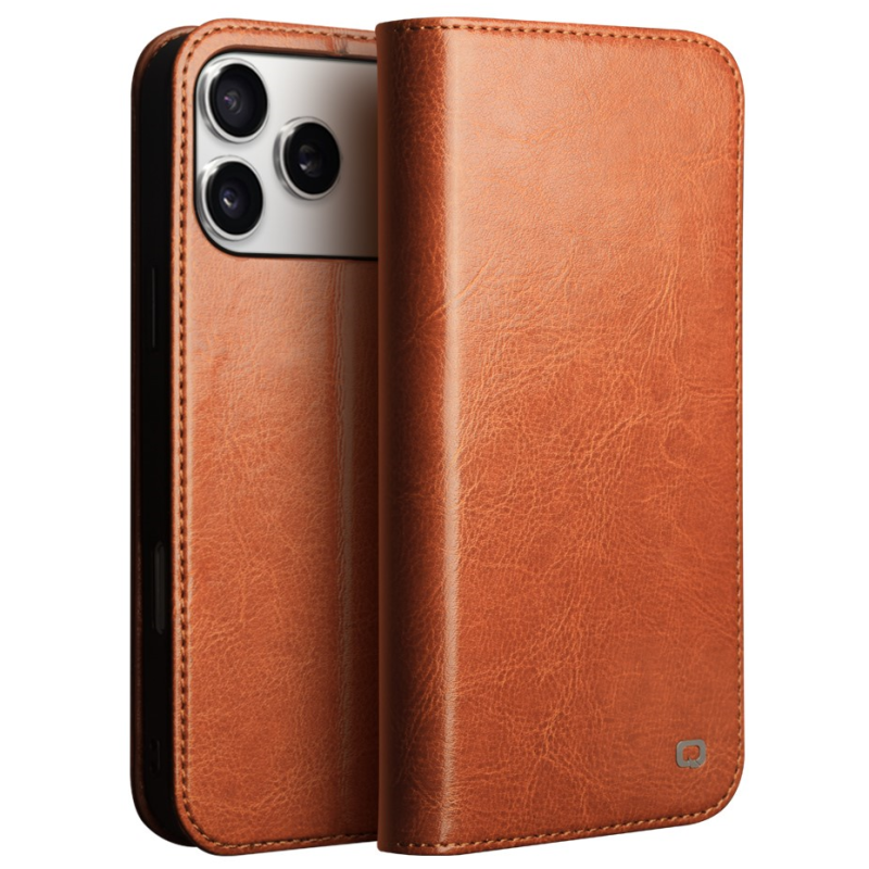 "QIALINO" atvēramais ādas maciņš - gaiši brūns (iPhone 17 Pro Max)