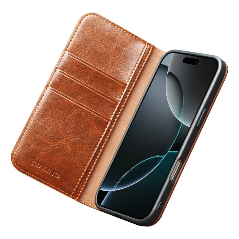 "QIALINO" atvēramais ādas maciņš - brūns (iPhone 17 Pro Max)