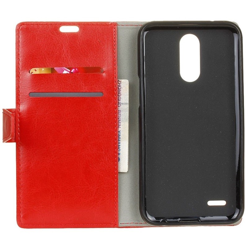 LG K10 2017 (X400, M250N) atvēramais ādas sarkans maciņš (maks) / Vacins.lv