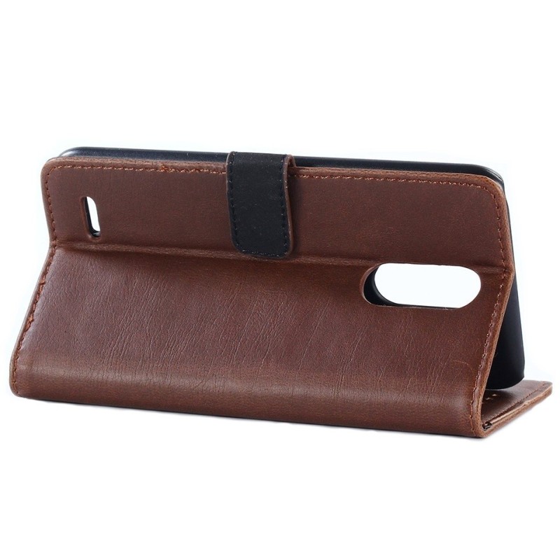 LG K10 2017 (X400, M250N) atvēramais ādas tumši brūns retro maciņš (maks) / Vacins.lv