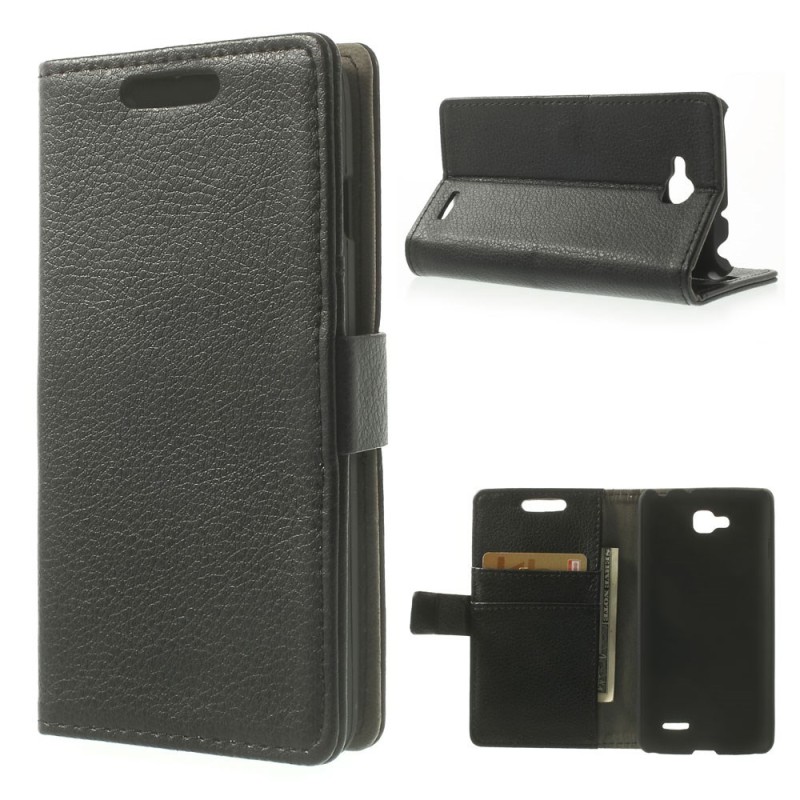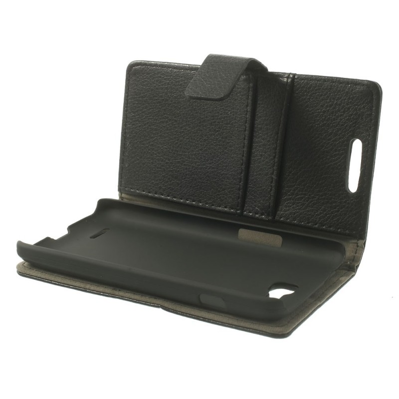 LG L90 D405 atvēramais ādas melns maciņš (maks) / Vacins.lv
