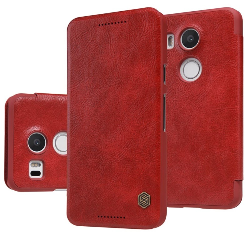 Greznais „Nillkin“ Qin sērijas ādas atvērams sarkans LG Nexus 5X maciņš (maks) / Vacins.lv