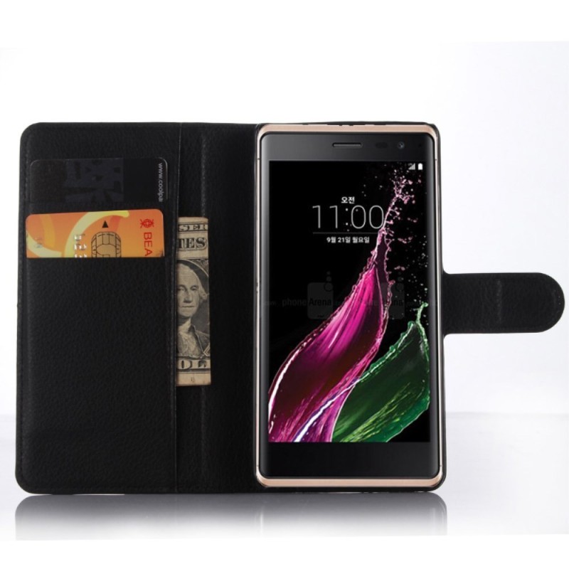 LG Zero (H650E) atvēramais melns ādas Litchi maciņš - maks / Vacins.lv