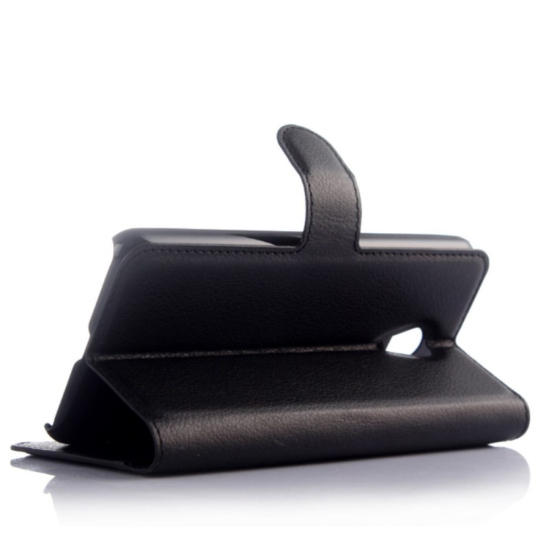 Meizu m2 note atvēramais melns ādas Litchi maciņš - maks / Vacins.lv
