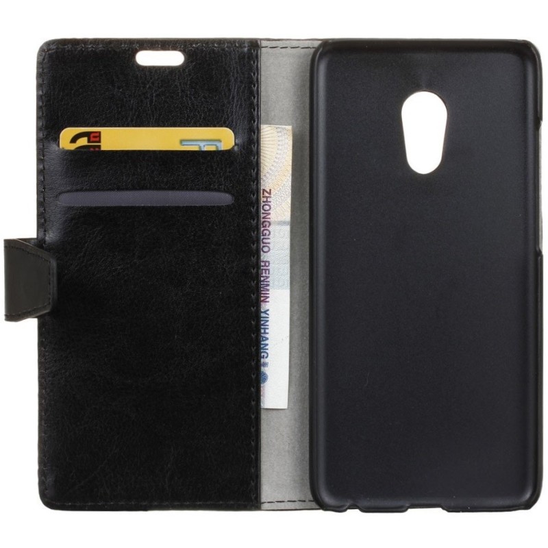 Meizu Pro 6 atvēramais ādas melns maciņš (maks) / Vacins.lv