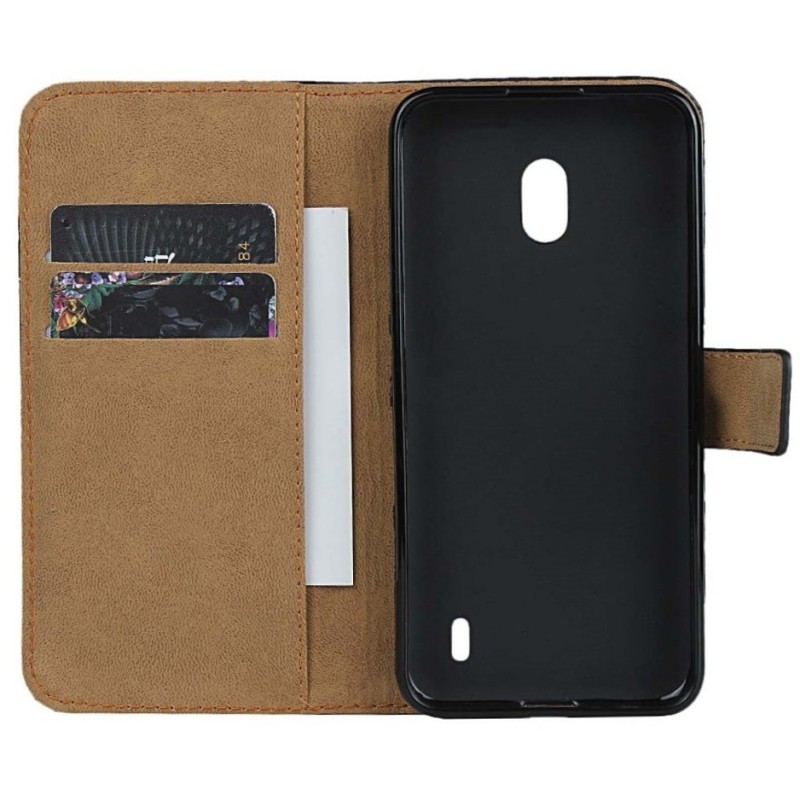 Nokia 2.2 (2019) atvēramais ādas melns Casual maciņš (maks) / Vacins.lv