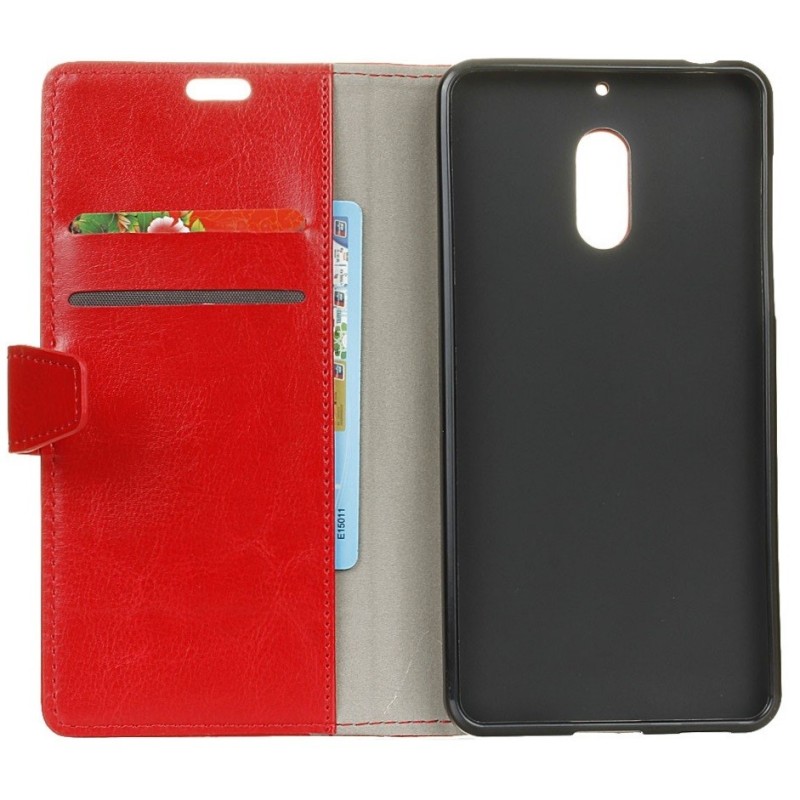 Nokia 6 atvēramais ādas sarkans maciņš, grāmata (maks) / Vacins.lv