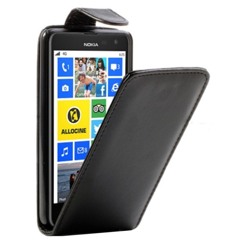 Nokia Lumia 625 klasisks ādas vertikāli atvēramais melns futrālis / Vacins.lv