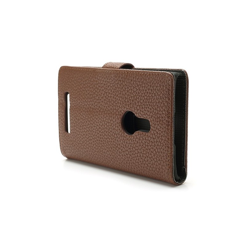 Nokia Lumia 925 atvēramais brūns ādas Lychee futrālis - maciņš / Vacins.lv