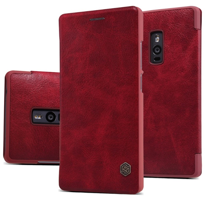 Greznais „Nillkin“ Qin sērijas ādas atvērams sarkans OnePlus 2 (Two) maciņš / Vacins.lv