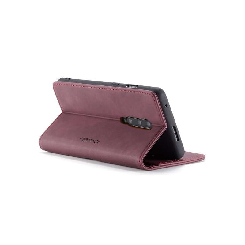 „CaseMe“ Retro solīds atvēramais ādas maciņš - bordo (OnePlus 7 Pro)