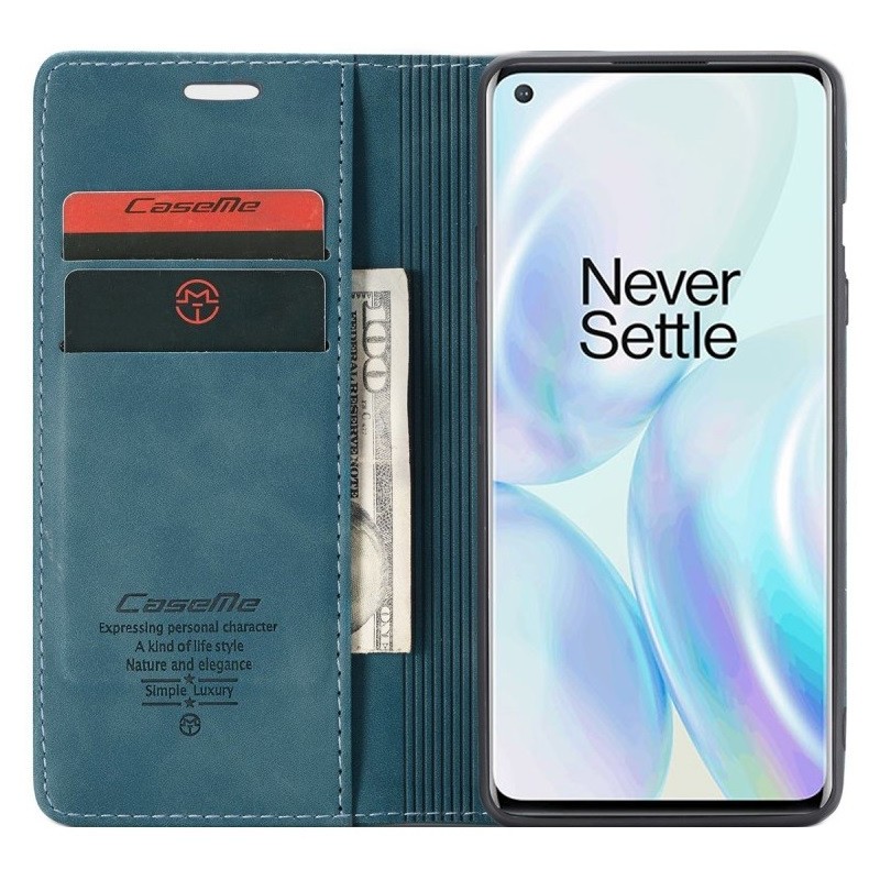 „CaseMe“ Retro solīds atvēramais ādas maciņš - bordo (OnePlus 8)