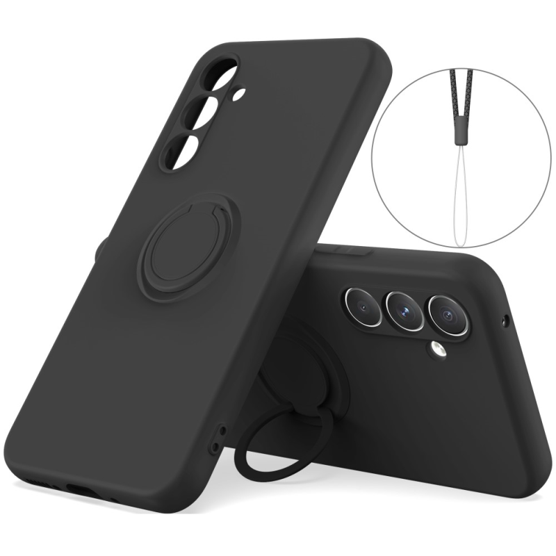 "Dechen" Ring Kickstand cieta silikona (TPU) apvalks - melns (Galaxy A15)