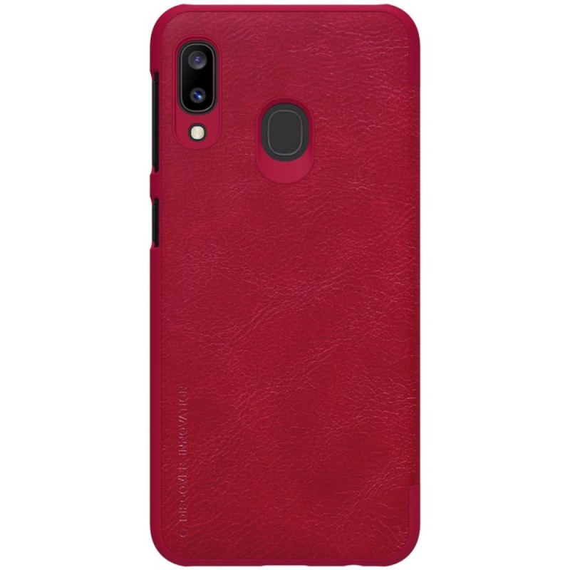Greznais „Nillkin“ Qin sērijas ādas atvērams sarkans Samsung Galaxy A20e (A202F) / Vacins.lv