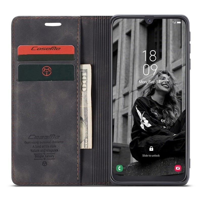 „CaseMe“ Retro solīds atvēramais ādas maciņš - melns (Galaxy A40)