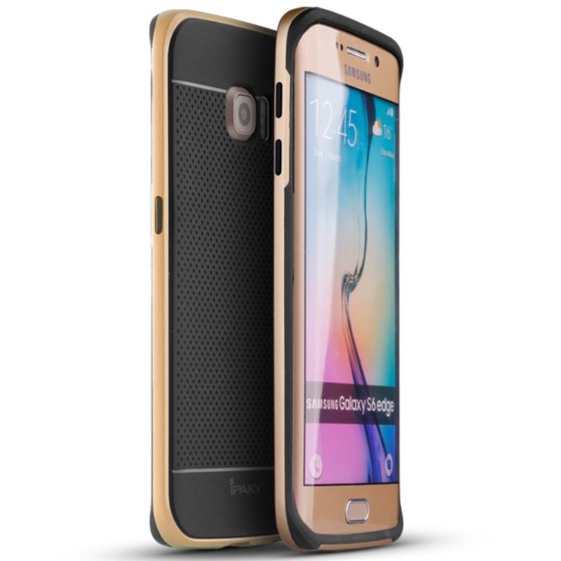 Samsung Galaxy S6 Edge G925 „IPAKY“ cieta silikona (TPU) melns apvalks (apmales - zeltā krāsā) / Vacins.lv