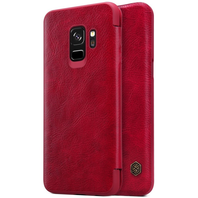 Greznais „Nillkin“ Qin sērijas ādas atvērams sarkans Samsung Galaxy S9 (G960) maciņš / Vacins.lv