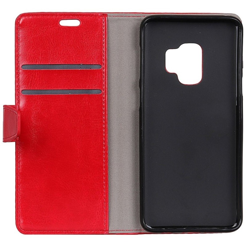 Samsung Galaxy S9 (G960) atvēramais ādas sarkans maciņš (maks) / Vacins.lv
