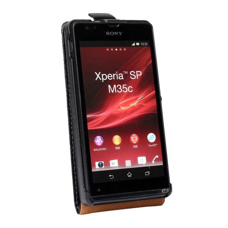Sony Xperia SP (M35H) klasisks ādas vertikāli atvēramais melns maciņš / Vacins.lv