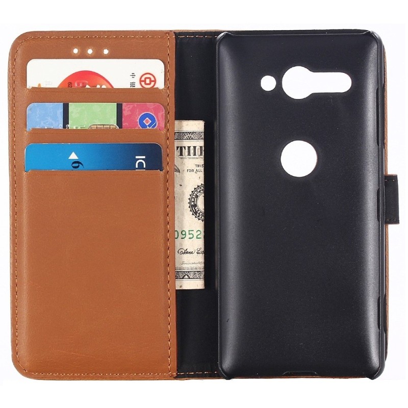 Sony Xperia XZ2 Compact atvēramais ādas gaiši brūns retro maciņš (maks) / Vacins.lv