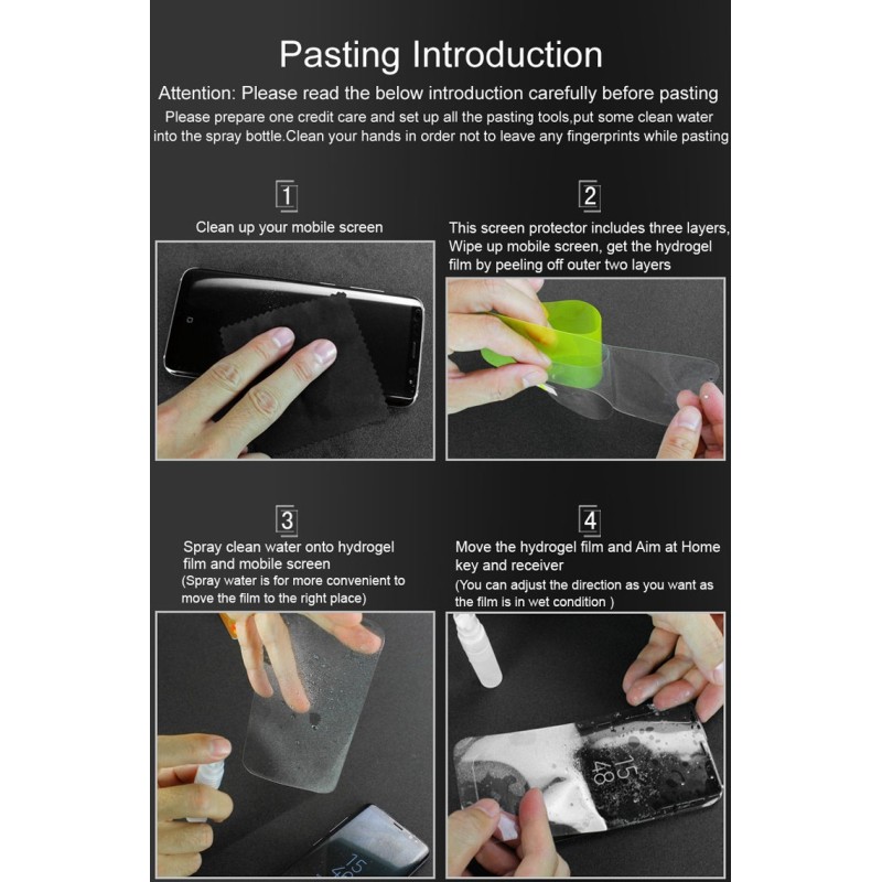 - Komplektā: ekrāna aizsargplēve 2x, ūdens padevi, līmes barjeras putekļu sloksnes, salvetes.
