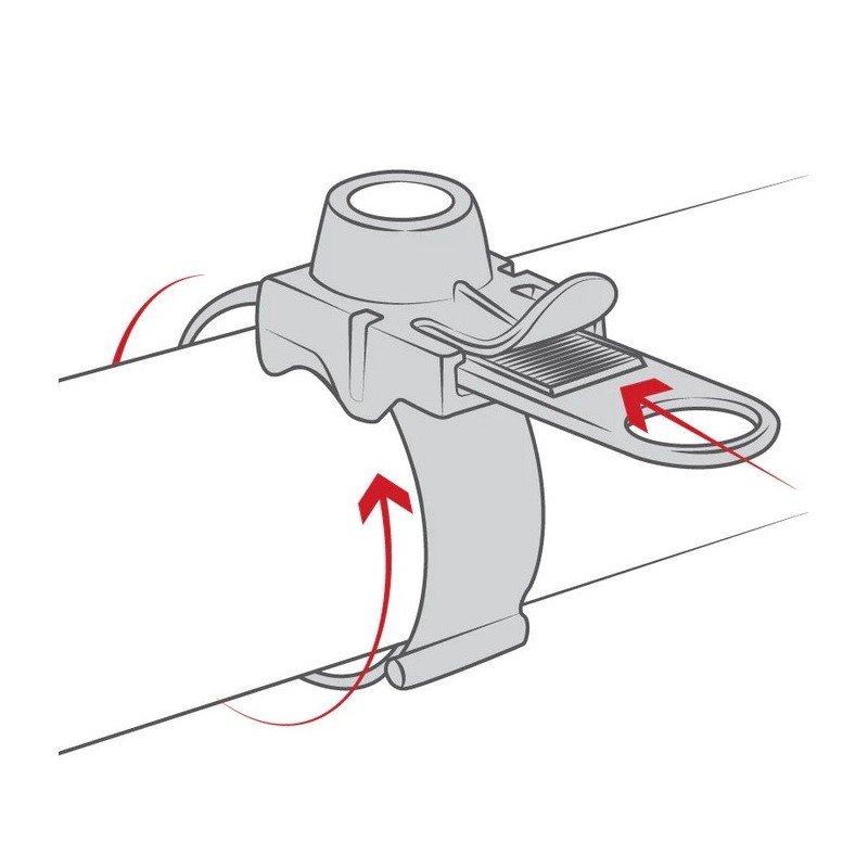 - 1 x montāžas siksna (piemērota velosipēdiem / elektroskrejritenim ar stūres diametru no 1,27 cm līdz 6,55 cm);