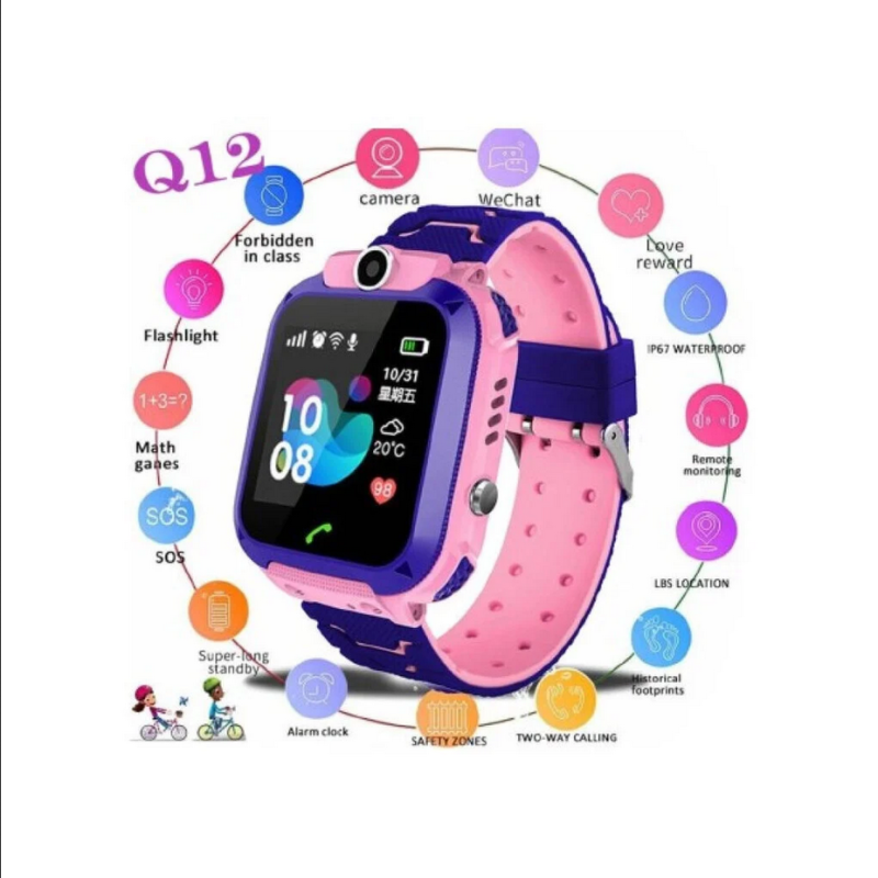Vai vēlaties izsekot bērna atrašanās vietu? Vai uztraucaties par sava bērna drošību? „Q12“ viedais pulkstenis bērniem - ir tieši radīts tam. Tas ir ekskluzīva dizaina, ērts, sportisks pulkstenis, kas ļauj veikt zvanus un sūtīt ziņas. Ar tās palīdzību vairāku metru attālumā varēs sekot līdzi bērna atrašanās vietai, saņemt fotogrāfijas, būs iespēja ieklausīties apkārtējā vidē, kā arī noteikt neatļautas atrašanās vietas. Ar šo bērnu viedpulksteni „Q12“ Jūs varēsiet ne tikai uzraudzīt savu bērnu, bet arī bērns varēs iesaistīties interesantās aktivitātēs, jo pulkstenis ir integrēts ar dažādām atjautības spēlēm.