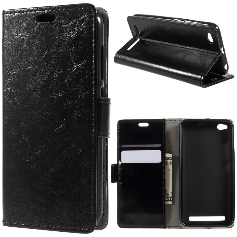 Xiaomi Redmi 5A atvēramais ādas melns maciņš, grāmata (maks) / Vacins.lv